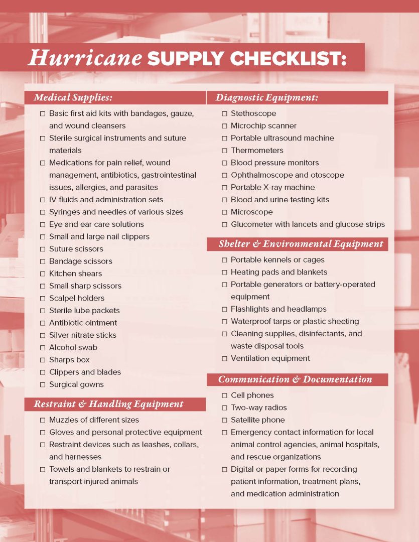 In times of need, we strive to help those who have given so much of what they have to help animals in need. We have regularly available resources to send clients, including a checklist when preparing your practice for a storm and an aid listing to help professionals whose time is spent caring for others.